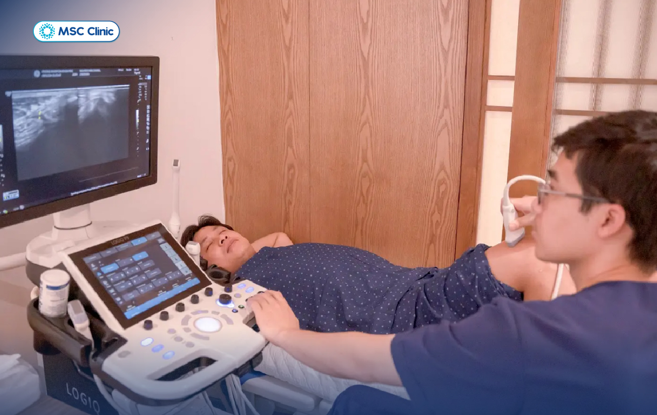 Nhạc sĩ Nguyễn Văn Chung khám cận lâm sàng – Siêu âm khu vực gân cơ khớp gối tại MSC Clinic
