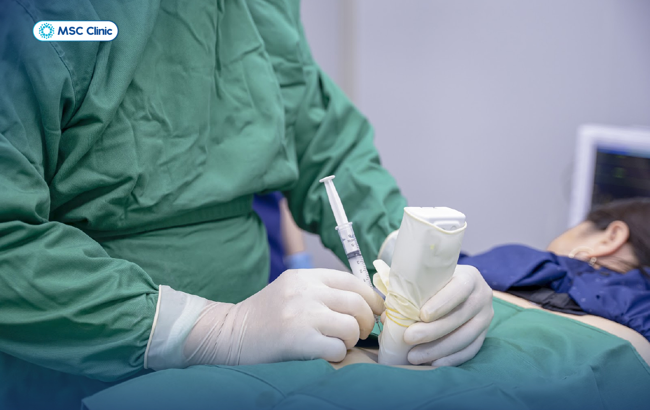 Toàn bộ quy trình tiêm được thực hiện tại phòng thủ thuật vô trùng, sử dụng hệ thống siêu âm hiện đại định vị chính xác vị trí tổn thương