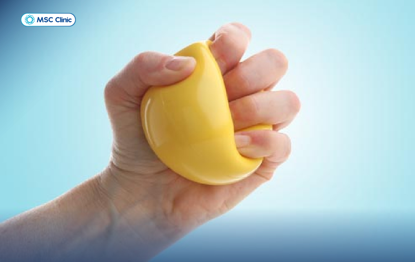 Bài tập bóp bóng trong lòng bàn tay giúp tăng cường cơ ngón tay, nên chọn bóng vừa tay để đảm bảo hiệu quả và tránh chấn thương