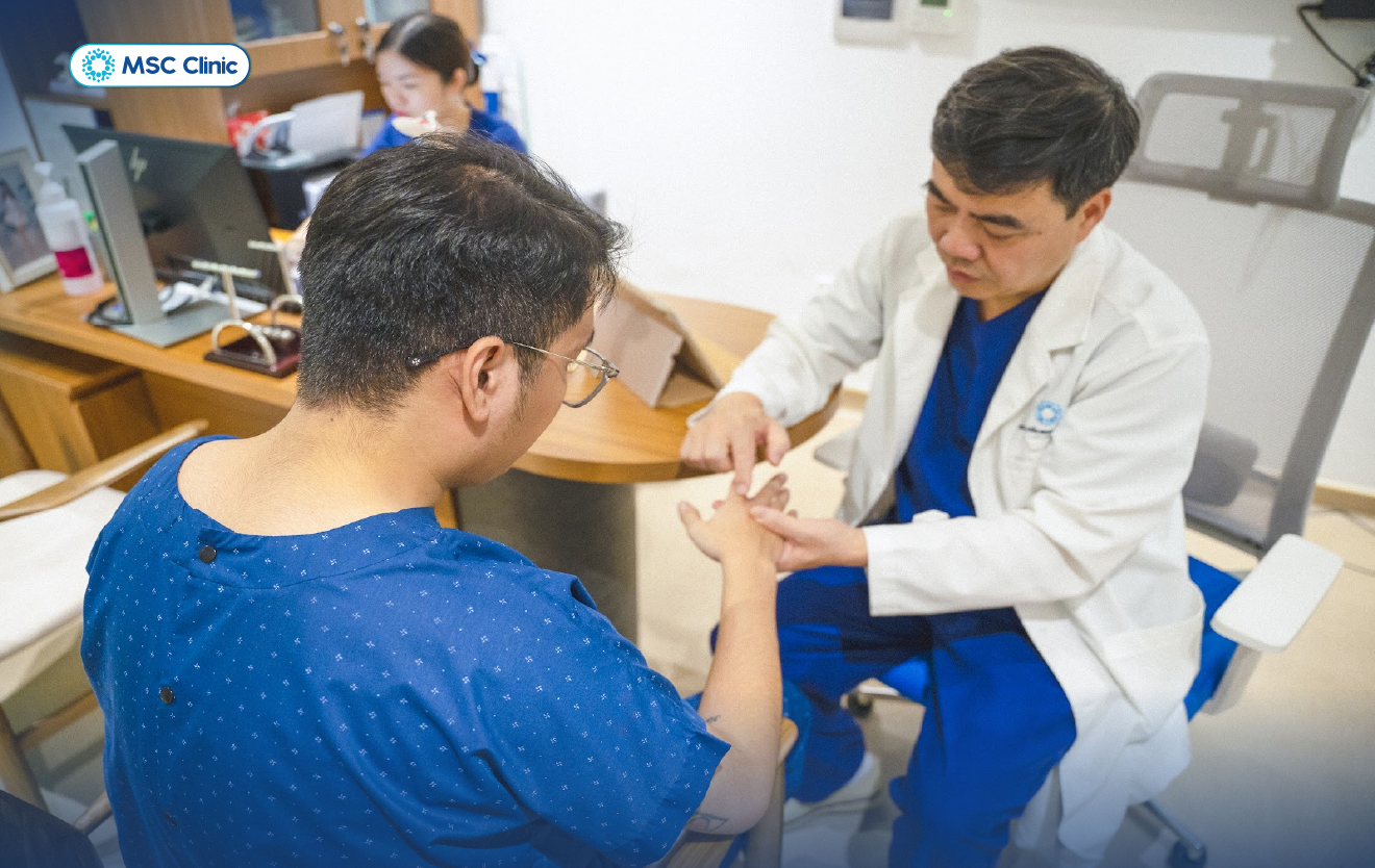 Phục hồi sau mổ nối gân ngón tay là một quá trình đòi hỏi sự can thiệp từ đội ngũ chuyên môn và phương pháp điều trị phù hợp để tránh biến chứng dính gân, hạn chế vận động. Tại MSC Clinic, người bệnh sẽ được tiếp cận các giải pháp y học tái tạo hiện đại kết hợp phục hồi chức năng chuyên sâu. Nếu bạn đang gặp khó khăn trong việc cử động ngón tay sau mổ nối gân, đừng chần chừ, hãy đến MSC Clinic để được thăm khám và phục hồi kịp thời, đúng cách.