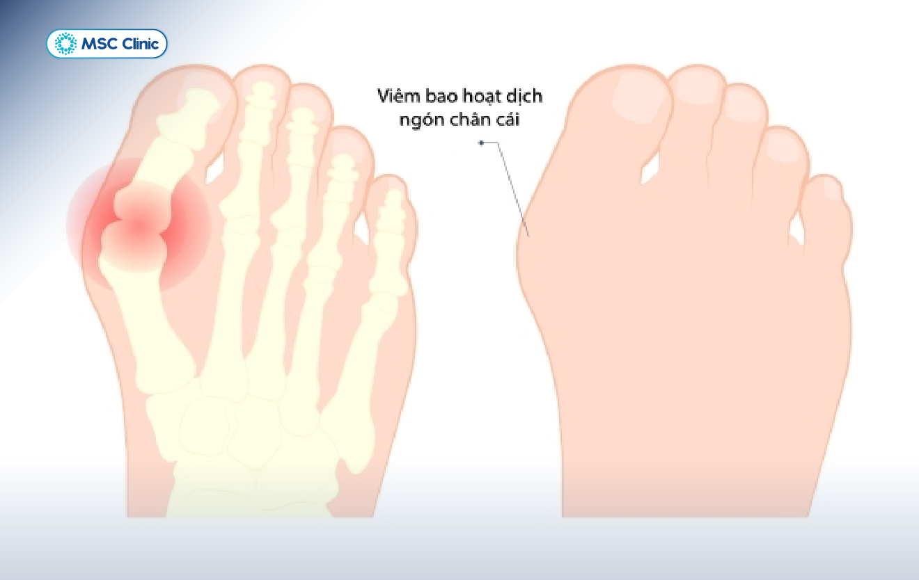 Đau, sưng và khó cử động ngón chân cái có thể là dấu hiệu cảnh báo viêm bao hoạt dịch ngón chân cái, một bệnh lý khớp thường bị bỏ qua cho đến khi gây ảnh hưởng rõ rệt tới việc đi lại. Hãy cùng MSC Clinic rõ nguyên nhân và đặc điểm bệnh sẽ giúp bạn phát hiện sớm và điều trị hiệu quả.